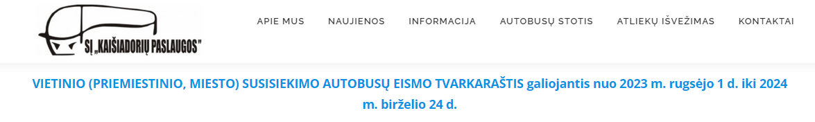 Patvirtintas autobusų tvarkaraštis galios nuo 2023-09-01 iki 2024-06-24.