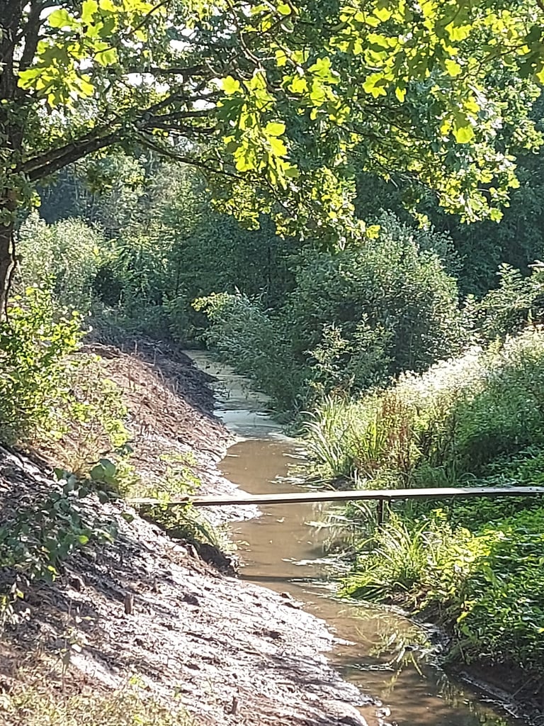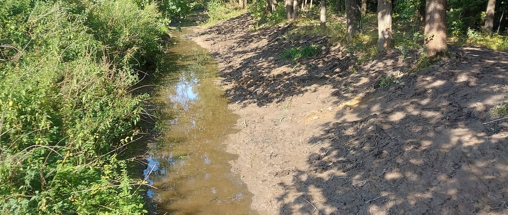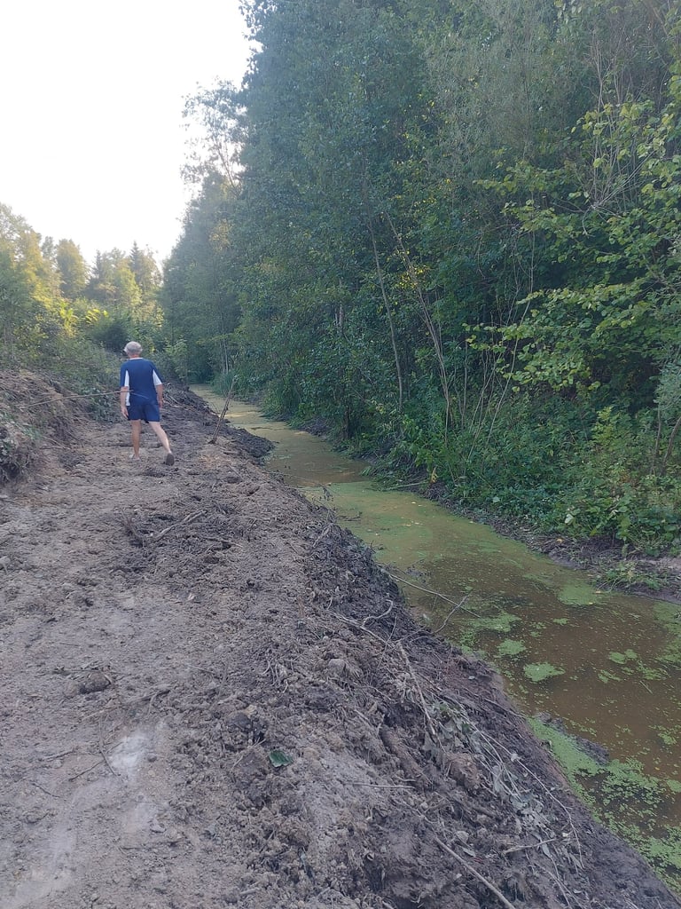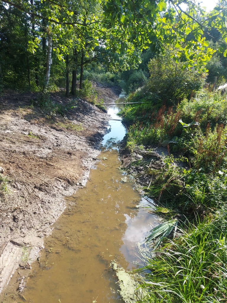 Iš dalies sutvarkytas melioracijos griovys, esantis Girelės I (Ščebnicos) tvenkinio pusėje