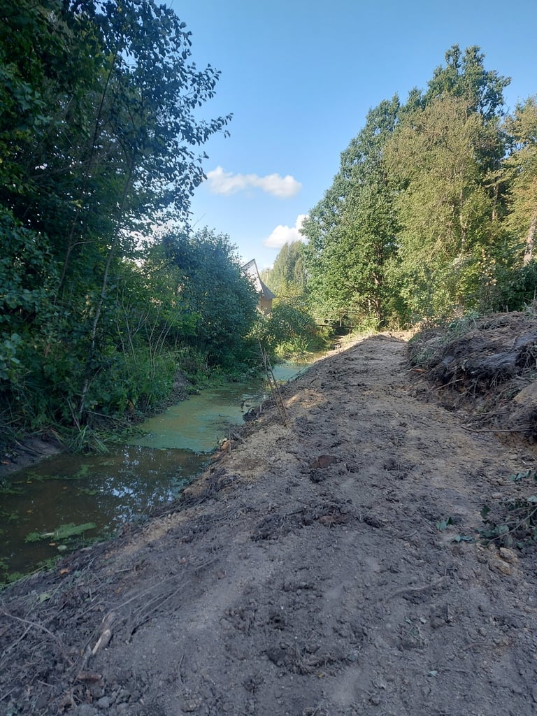 Apvalytas melioracijos griovys, kuris ribojasi su KSB „Baltasis berželis“ ir valstybiniu mišku Girelės I (Ščebnicos) tvenkinio pusėje (galite nuvykti apžiūrėti). Savo darbų veiksmus derinome su Valstybinių miškų urėdijos Žiežmarių girininkijos padalinio girininku Pranu. Girininkas kartu su mūsų atstovu-rangovu perėjo mišką, suderino, kokie medžiai bus kertami, kokie ne, ir pagal taisykles girininkas sužymėjo kertamus medžius. Rangovas atliko savo darbą. Su juo buvo suderinta, kad kertamus medžius jis pasiima (todėl buvo sąlyginai mažesnė darbų atlikimo kaina), o krūmus ir krūmokšnius - iškerta ir išveža. Kai ką girininkija leido palikti. Atlikome tik dalinį melioracijos griovio tvarkymą, darbus tęsime žiemą arba kitais metais pavasarį (žr. foto). Bendrija neturi tiek lėšų, kad per vienerius finansinius metus atlikti kapitalinį sutvarkymą, todėl dalis darbų atidėta - nuotraukose matosi, kad viena pusė aptvarkyta, kita ne; dalį tvarkymo darbų darysime talkų metu, kas ribojasi su SB teritorijos sklypais, o kitą, kur miškas, vėl suderinsime su girininkija ir užbaigsime darbus ženkliai vėlėliau. Tikimasi, kad sutvarkytu melioracijos grioviu bus geresnis vandens nutekėjimas po lietaus, sniego tirpsmo. Vanduo patenka į melioracijos griovius ir per drenažo sistemą, kuri, žinoma, irgi yra labai prastos būklės ir deramai veikia iš dalies.