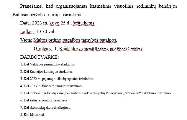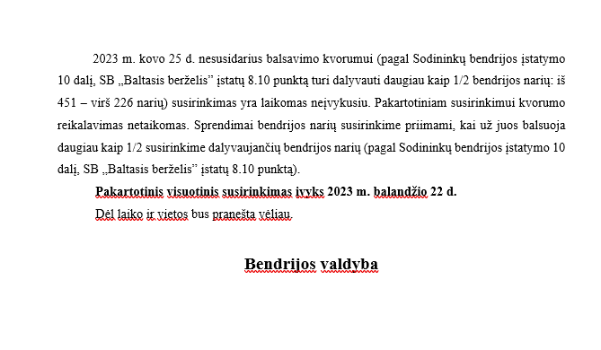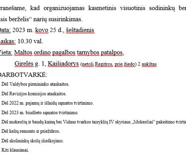 Ataskaitinis susirinkimas įvyks 2023-03-25. Kvorumui nesusidarius 2023-04-22 (plačiau spausti čia).